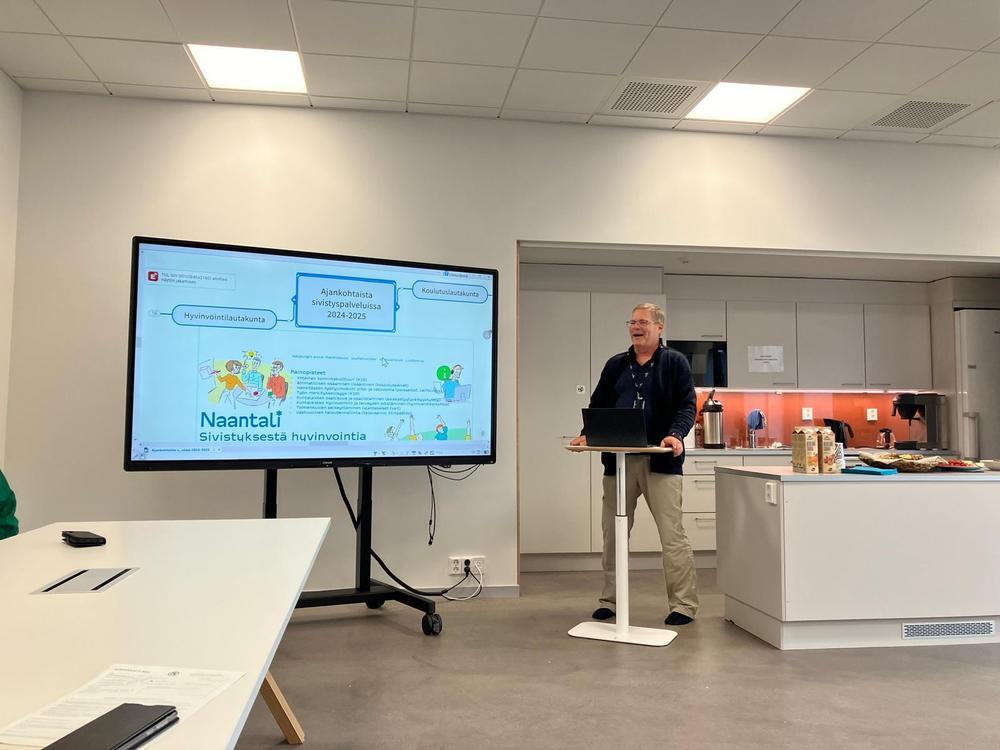 Kuulimme aluksi Naantalin kaupungin sivistysjohtajan, Kimmo Kuusimäen, mainion esityksen sivistystyspalveluiden ajankohtaisista asioista. Tämän jälkeen siirryimme työryhmiin työstämään ideoita ja tavoitteita tuleviin kuntavaaleihin 2025 ja valtuustokauteen 2025-2029.