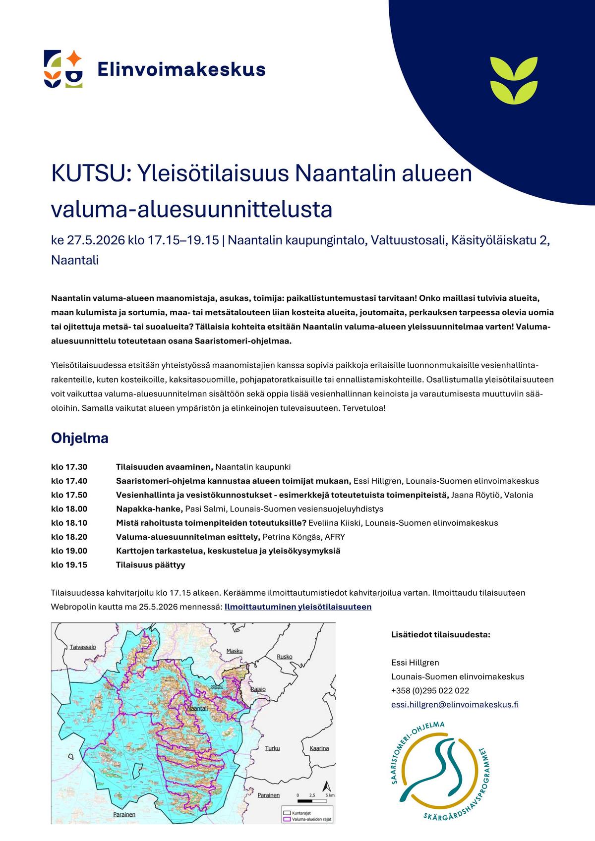 Ilmoittautuminen täällä: Valuma-aluesuunnittelun yleisötilaisuus Naantalin kaupungintalolla 27.5.2026 klo 17.15-19.15: Webropolilla luotu kysely